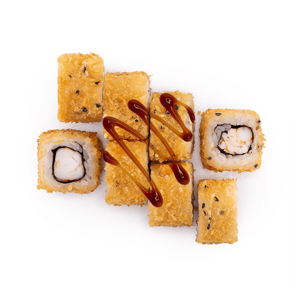 Роллы теплые классические. Состав: -Рис -Нори -Креветка -Панировка