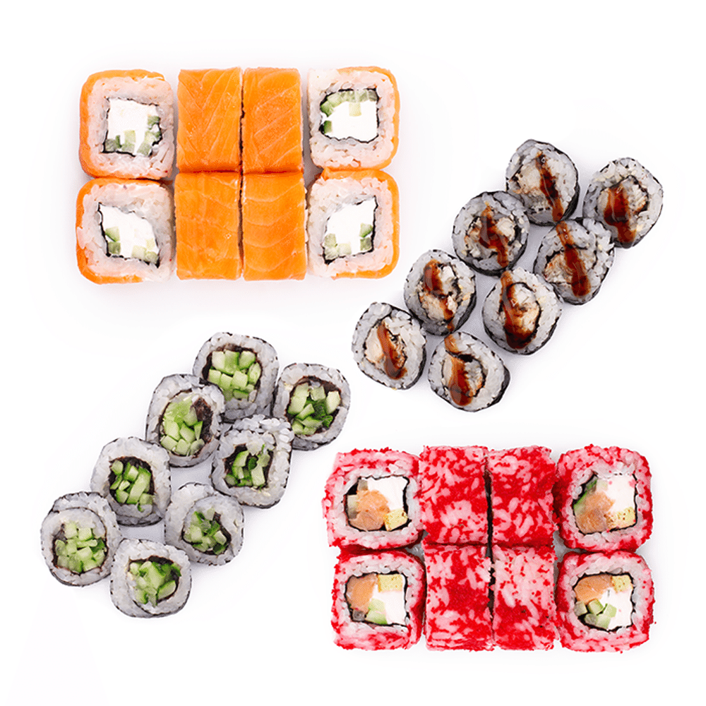 -Филадельфия -Унаги маки -Капа маки -Калифорния с лососем