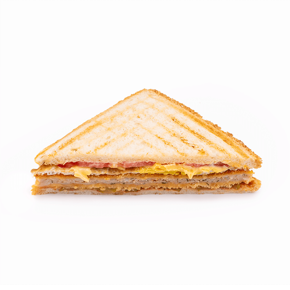 Завтрак - это главное блюдо дня. Поджаренный на гриле тост, со сливочным сыром Чеддер, маринованными огурчиками, жареным яйцом, куриной котлеткой обжаренной на гриле. Сытость на весь день.