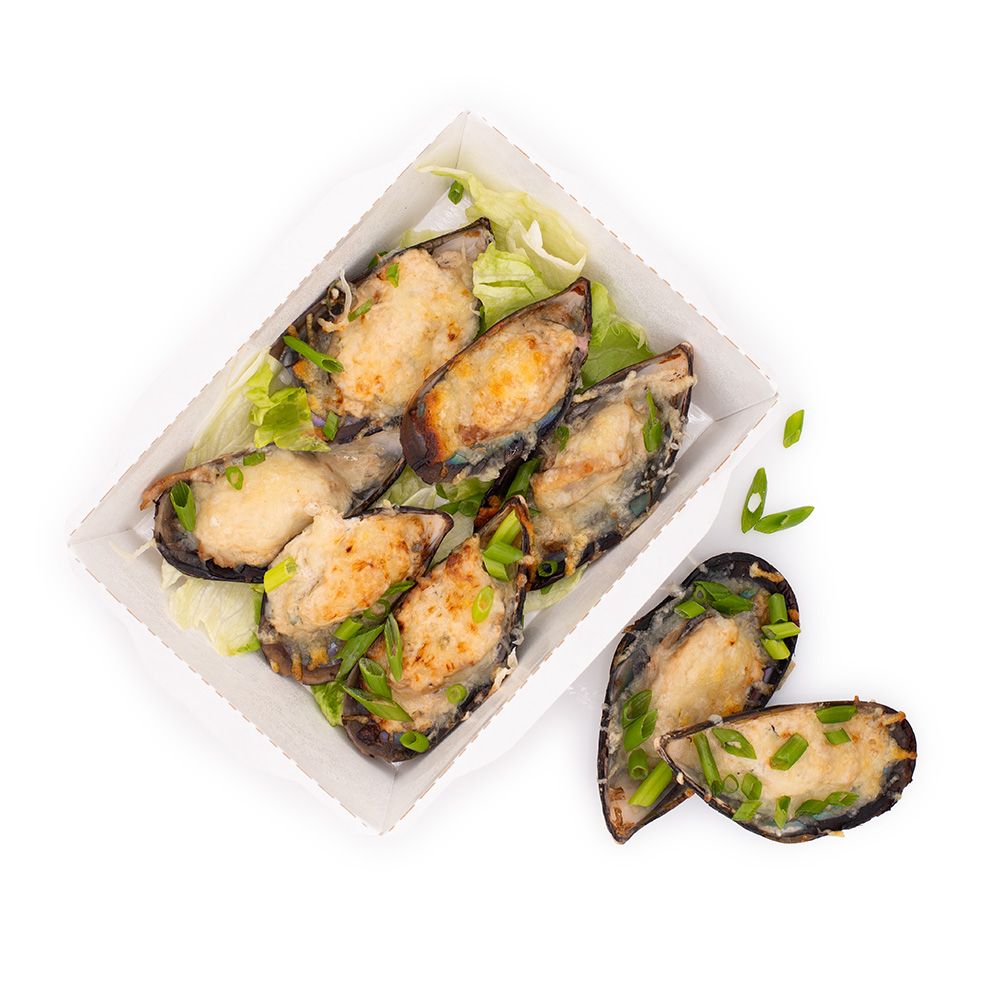 Запеченные мидии в сливочно-сырном соусе