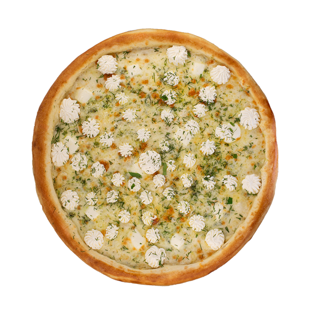 "Сырное наслаждение". Невероятно сливочная , с мягкими, слегка волокнистыми кусочками итальянского сыра Mozzarella, творожного сыра Фета под фирменным белым соусом.